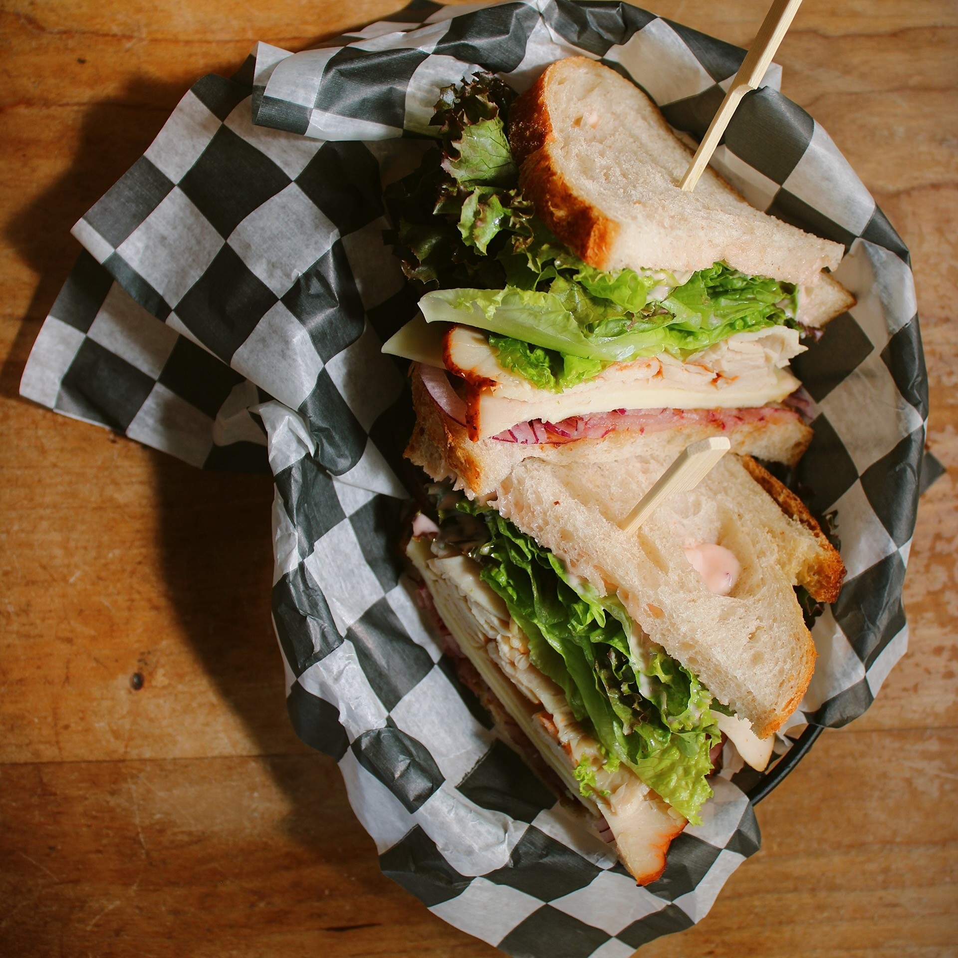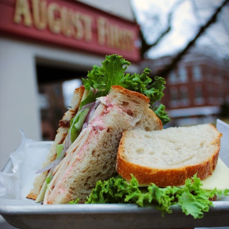 roasted turkey, cabot cheddar, apple chutney, cranberry mayo, lettuce, red onion, on country french bread